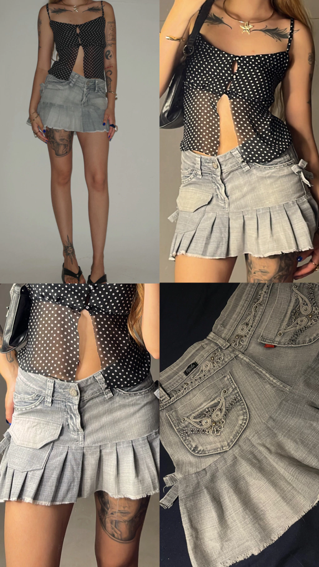 UPCYCLING MINI SKIRT CARGO GREY DENIM Y2K